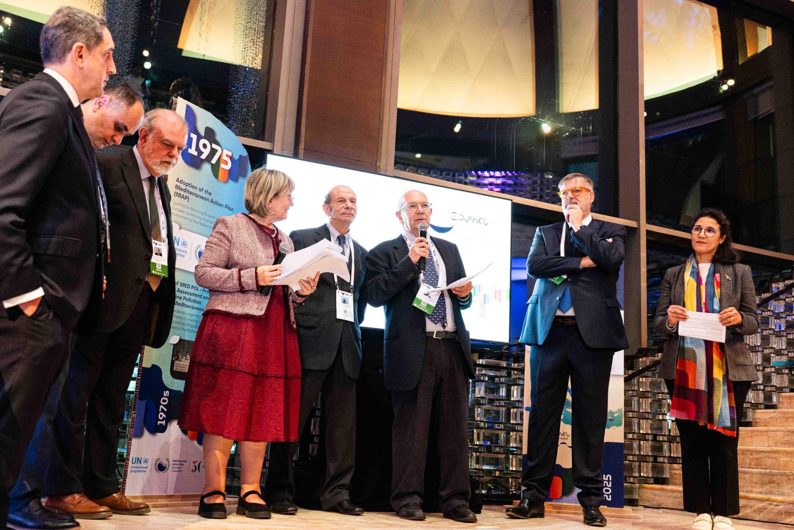 A dedicated ceremony for the 50 and 30-year anniversaries of UNEP/MAP and the Barcelona Convention took place at the end of the 1st day of the COP. MIO-ECSDE Chairman Prof. Michael Scoullos was one of the panelists and shared with everyone, through a photo journey, a small taste of his long-standing presence (more than 50 years) and historically significant contribution to the Barcelona Convention system, since before the establishment even of UNEP/MAP in Athens, Greece or of the Mediterranean Commission for Sustainable Development (MCSD).